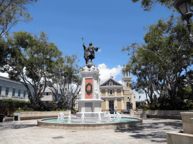 El espacio entre la Alcaldía y la catedral conforman la plaza de Colón, con su estatua en el centro de bronce. Este espacio rememora el descubrimiento de Puerto Rico, ya que algunos historiadores sostienen que Colón entró por la bahía de Mayagüez.