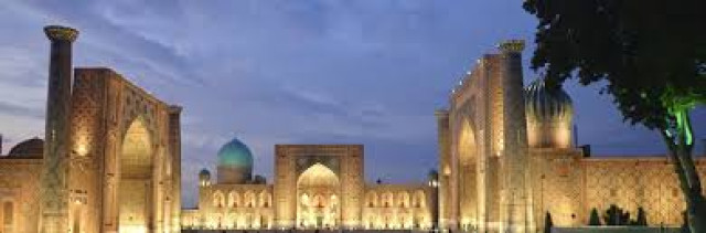 La Plaza del Registan con sus tres gigantescas y bellísimas madrazas, la de Ulugbek del siglo XV , y las de Shir Dor y de Tillya-Kari del siglo XVII , constituyen una explosión de belleza , armonía y serenidad , difícil de encontrar en cualquier otro lugar del mundo . El color de los miles de azulejos que envuelven los tres edificios, la magnificiencia del espacio, y la paz que se respira en todo su entorno, convierten esta plaza en el lugar ideal de reflexión y silencio para el viajero que busca las huellas del arte , la cultura y la historia de la mítica Ruta de la Seda .