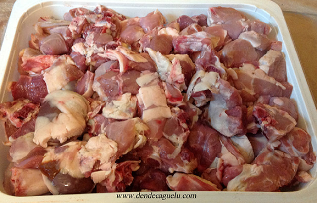 Lechazo de cuatro a seis semanas y de cuatro a seis kilos, que será descuartizado en trozos más/menos cuadrados de cuatro a cinco centímetros y que una vez salados se insertan en los pinchos, útil compuesto por una barra de acero inoxidable con mango de madera rectangular y final punzante, de una longitud igual al ancho de la chimenea o campana.