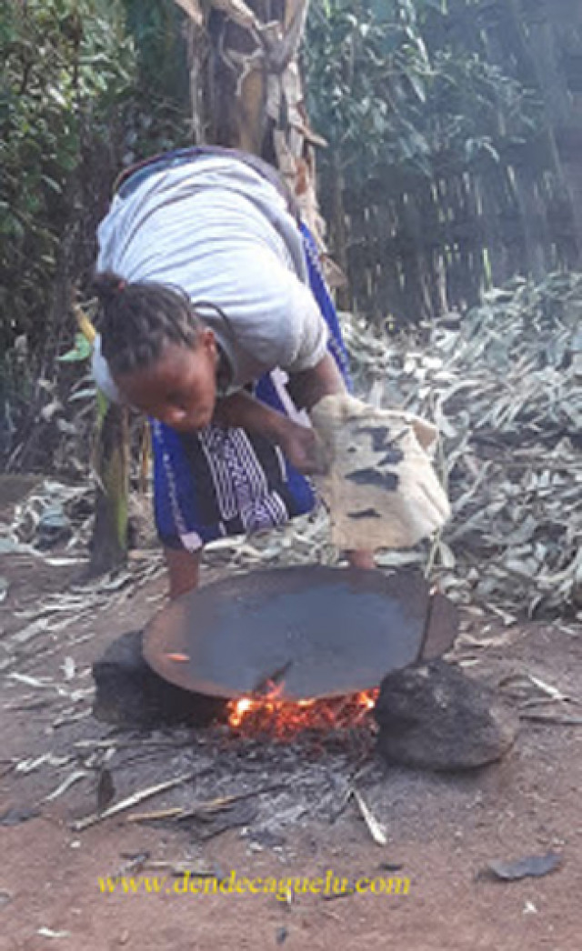8.- En un fuego, sobre una chapa metálica se coloca la torta, con la protección de las hojas, hasta que este asada.