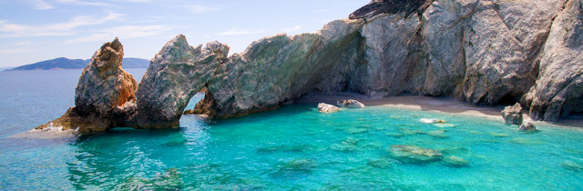 Aunque la isla de Kalokeri donde transcurre casi toda la acción de la célebre película Mamma Mia de 2008 (porque ha habido una segunda parte en 2018) o el hotel Villa Donna no existen, la mayor parte de los escenarios exteriores y algunas de las principales escenas, como la mítica boda final en la pequeña ermita de Agios Ioannis Prodromos, fueron rodadas en Grecia, en concreto en las Islas Espóradas, sobre todo en Skiathos y Skopelos. Mucho menos turísticas, aunque seguramente más bellas que las Cícladas o las Jónicas, estas islas tienen la peculiaridad de encontrarse dentro del Parque Marino, una reserva nacional de protección de especies en vías de extinción, como la tortuga caretta, el halcón de Eleonor y la gaviota de Audouin. Skiatos debe parte de su fama a la playa de Koukounariés, para algunos es la mejor playa de Grecia, que se llena en los meses de julio y agosto y que merece la pena ver fuera de temporada. Skopelos con sus iglesias y su fortaleza veneciana tiene un encanto que reside en parte en su paisaje, donde los viñedos y olivos sacan provecho de sus fértiles tierras. Skopelos es un caso peculiar ya que el rodaje de la película Mamma Mia con Meryl Streep y Pierce Brosnan revolucionó la isla hasta el punto que está viviendo todavía hoy una época dorada con turistas llegados de todo el mundo para ver las localizaciones paradisíacas que sirvieron de telón de fondo para el film.