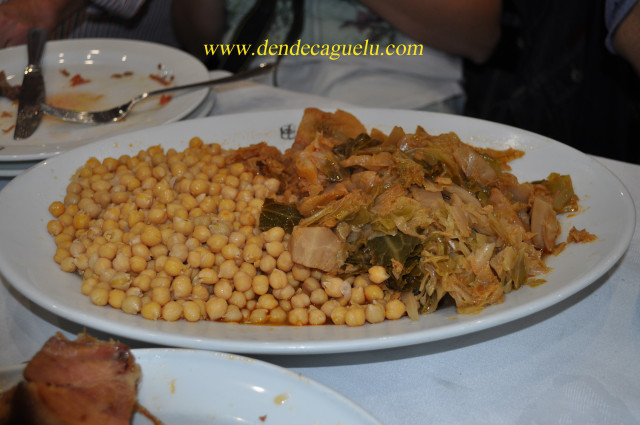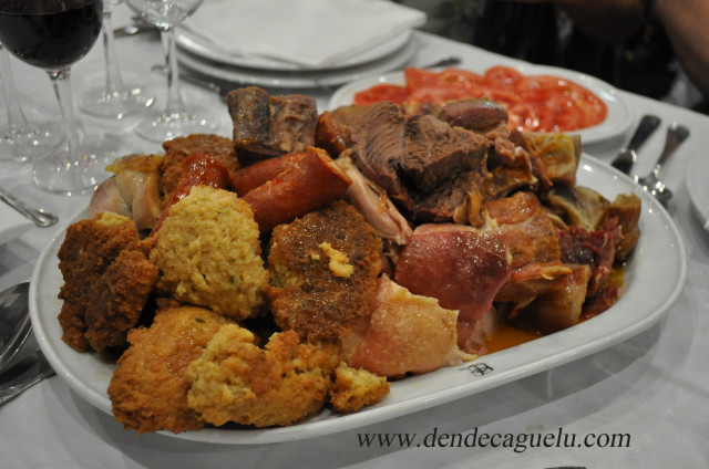 La combinación en una lenta y prolongada cocción de carnes curadas y frescas con garbanzos y verduras, tiene como resultado un equilibrado y agradable menú. Que por su abundancia de ingredientes se recomienda ser degustado con tanta sosiego como requiere su preparación.