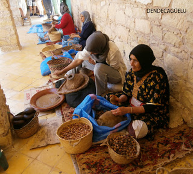 Hablar de ensaladas es sinónimo en muchas ocasiones de hablar de aceite. El de oliva, pero sobre todo las aceitunas, están presentes en muchas de sus elaboraciones, teniendo en el aceite de la especie ArganiaSpinosa, su elemento más diferenciador. Único en el mundo, el aceite de Argán, es la base fundamental de la cultura de los bereberes, su fuente alimentaria y de recursos, utilizándose como forraje, madera y alimento de las cabras, que no dudan en subirse a los mismos para comer sus hojas. La producción mundial se ciñe a los semidesiertos del suroeste de Marruecos, siendo declarada la zona por la UNESCO en 1998 Reserva de la Biosfera Arganeraie, para proteger la especie. Sus múltiples aplicaciones cosméticas y alimenticias, son el sustento de las cooperativas de mujeres existentes en su zona productiva, que se integran a través de ellas en el mundo del trabajo y adquieren derechos inimaginables hace años.