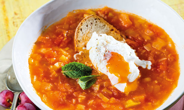 Empezaremos tomando cosas suaves, como un ajo de peces de río, un almorraque, una boronía de tomate y bacalao crudo y desalado; mas una cachorreña con huevo frito, tomate y cebolla; sin olvidarme del cojondongo con buenos tomates, pepino, pimientos de la mi huerta, jilimojey una rica trincaya…; para que se mojeteenbien mojeteaos.