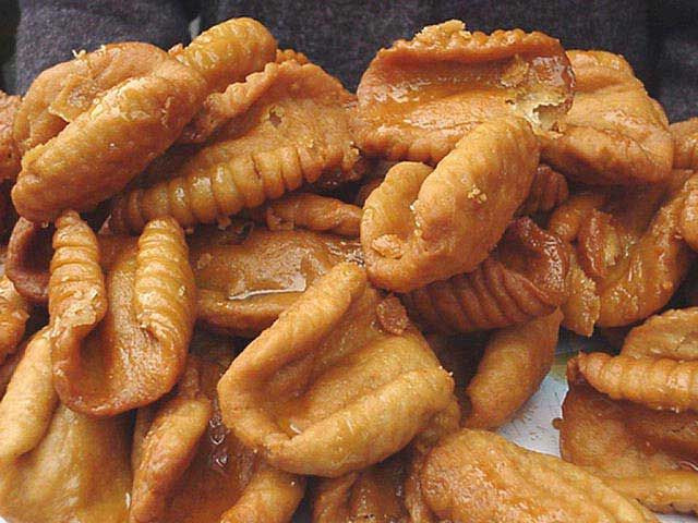 Sorbito de aguardiente y café; y pasamos a la mesa de al lado, donde están las bandejas de dulces extremeños, para que cada uno de estos tragonazos se sirvan de los que quieran:Alajú confitado de miel y nueces, entre dos blancas obleas; cristioneso gañotes; nuégados, perrunillas, piñonate, pestiños yregilaiyos…