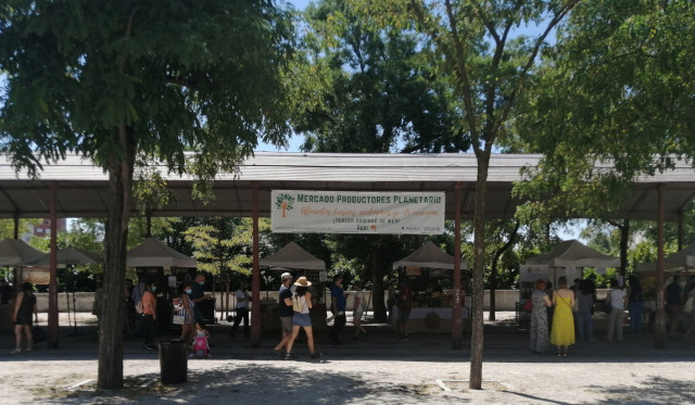 Pequeños comerciantes venden diferentes productos alimentarios, ecológicos y de cercanía en el Mercado Municipal de Productores Planetario, a pocos metros del Parque Tierno Galván el tercer domingo de cada mes. La iniciativa promueve el consumo consciente, responsable y sostenible. Este mercado acoge a 36 pequeños productores madrileños, todos ellos con explotaciones que se encuentran a una distancia no superior a 120 km de la capital y con un denominador común, la producción artesanal y/o ecológica. Se pueden adquirir, entre otros productos, aceites, carnes, hortalizas y verduras, frutas y zumos naturales, quesos, huevos, miel, dulces, conservas, pasta fresca y aperitivos. productoresplanetario.es