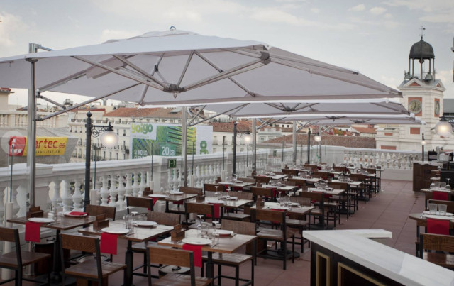 No hay que esperar al día 31 de diciembre para revivir en directo las doce campanadas del reloj de la Puerta del Sol. El carismático y televisivo chef Alberto Chicote propone su terraza Puerta del Sol en la última planta de El Corte Inglés con vistas al famoso reloj. Ideal para tomar el aperitivo, dos tapas y bebida por 11 euros. Por ejemplo, ensaladilla rusa con langostinos y ventresca en copita Maria Antonieta, bonito embotado casero con tomate natural y aliño madrileño o canelón de pollo al carbón con queso gratinado. puertalsol.com