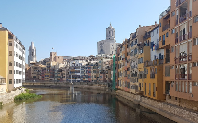 El acceso más habitual al casco histórico es la plaza de San Feliu, se cruza uno de los emblemas de la ciudad: el río Onyar, con sus coloridas casas y sus reflejos ocres sobre el agua. Una vez se cruza el río el turista se traslada a la Edad Media, y lo habitual es perder la noción del tiempo y el espacio real.