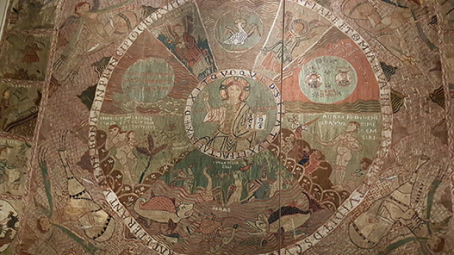 En la catedral con la nave gótica más amplia del mundo encontramos un tesoro. El tapíz de la creación. Bordado con lanas de colores tejida con hilos de diferentes colores rojo, verde, amarillo, azul oscuro, gris y blanco hacia 1100. Un delicado tejido rico en detalles iconográficos, y de variado contenido temático, de más de tres metros y medio de alto y 4 y medio de largo.