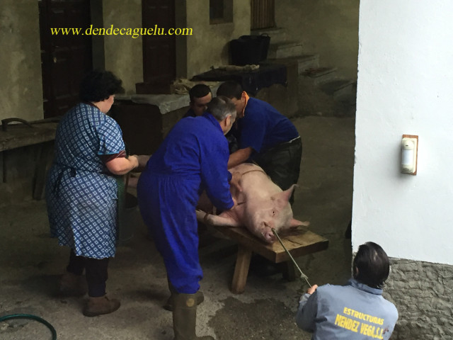 El proceso en sí es todo un ritual, que goza de un rígido protocolo y requiere de unas tareas y aprovisionamientos previos, un trabajo duro que se alarga durante de uno a tres días, con un perfecto reparto de tareas entre el hombre y la mujer. El hombre mata, pela, desventra y descuartiza, mientras que las mujeres recogen la sangre, limpian las tripas y ejercen de mondongueras.