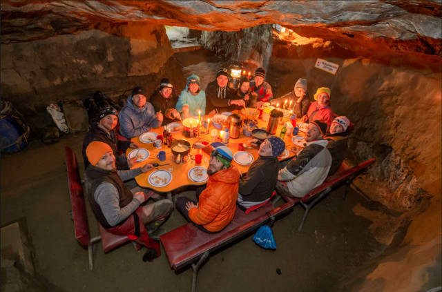 Hölloch se encuentra en el Muotathal y es el sistema de cuevas más grande de Europa. No importa si hay una tormenta de invierno o si la luna brilla, aquí abajo se entra en otro mundo seguro a una temperatura constante de unos 6 grados, con más calor que allá arriba, en la nieve que hace bajo cero. En el eterno silencio del inframundo, lejos de la civilización, se pueden apreciar las inmensas dimensiones de esta gigantesca cueva con más de 200 kilómetros explorados. Durante dos días los aventureros se sumergen en las profundidades de Hölloch y se despiden de la vida cotidiana. Dentro de ella se aprecian hermosas estalactitas, formaciones rocosas de más de 120 millones de años de antigüedad. Pasarán la noche en un vivac confortablemente equipado, donde disfrutar de una fondue y una zona confortable con agua corriente en la cocina, baños (aunque especiales y lugares cómodos para sentarse y acogedores para dormir con un aislamiento óptimo.