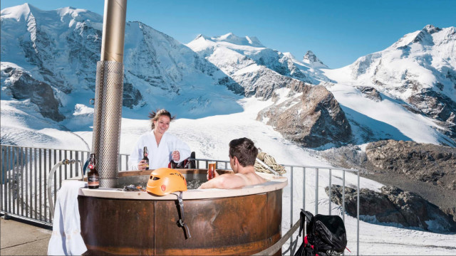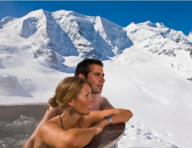 El plan comienza en Göschenen con un paseo por el bosque con raquetas de nieve disfrutando de la belleza del paisaje y del silencio solo interrumpido por el crujir de la nieve y acompañados por un guía experto. Para reponerse del ejercicio, les espera una tina de madera al viejo estilo con agua caliente en la que tomar la primera copa bajo el cielo estrellado y con vistas al glaciar Damma. Se completa la experiencia, como suele ser habitual en Suiza, con una buena fondue de queso en un establo alpino.