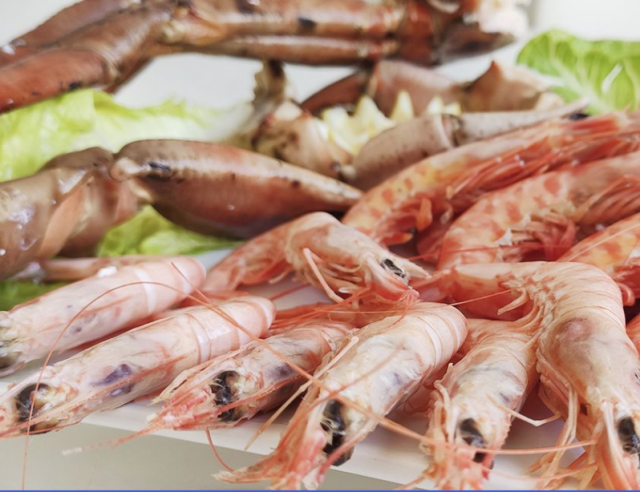 Gamba blanca de Huelva. Algunos la consideran la reina de los mariscos, por su distinguido sabor, exquisita ternura de su carne y a la extensa variedad de platos a que ha dado lugar. Crustáceo de cuerpo alargado y habita en suelos arenosos del litoral andaluz onubense a profundidades de 180 y 450 metros. Hay gambas y gambas, las rojas abundan en el Mar Mediterráneo y las gambas blancas de Huelva en el Atlántico. Es la prima hermana del camarón, la langosta y del langostino. Son muy valoradas por su contenido nutricional ya que la gamba tiene una proteína ligera, de fácil absorción, que aporta vitamina B y E, además de hierro, zinc, calcio y fósforo.