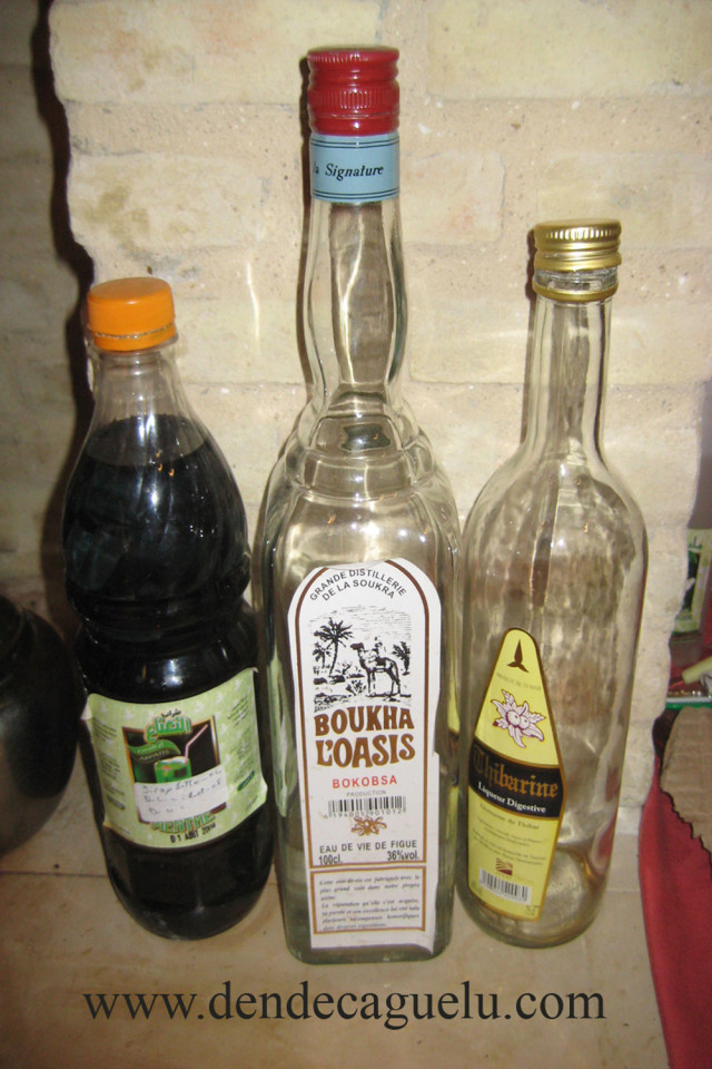 En lo referente a aguardientes y licores, en Túnez se elaboran el “boukka” a base de higos, que recuerda a un vodka seco afrutado; el Thibarine, con base de hierbas y dátiles y el Cedratine, en base a limones. En los oasis, durante la recogida de la palma, se elabora un vino fermentado durante 24 horas, que se denomina “laghmi”.