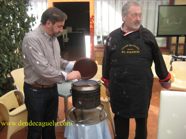 El recipiente utilizado no era otro que un rudimentario aparato de metal, similar a una pota adaptada al espacio, en el que los ingredientes que en él echaban se iban elaborando lentamente gracias al calor transmitido por el combustible carbonífero. Siendo las elaboraciones más usuales los guisos de patatas, alubias o garbanzos con diferentes carnes, que les aportaban las energías necesarias para desarrollar su duro trabajo.