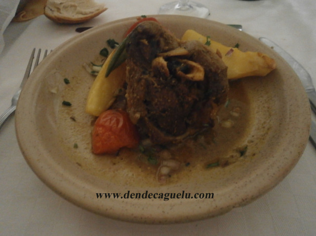 La carne de cordero troceada, patatas, tomate, pimientos, cebolla, especies, sal y agua, son los sencillos ingredientes que componen el mismo.
