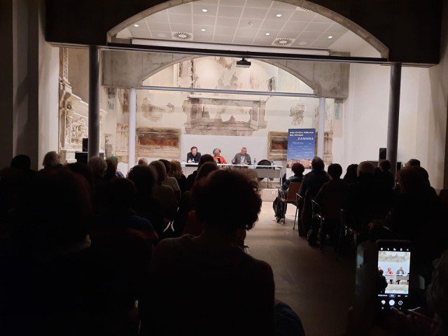 Nuestra colaboradora Concha Pelayo, escritora, presentó su último libro, CONDENA, en la Biblioteca Pública de Zamora. En esta ocasión, Concha nos lleva al mundo carcelario, para que conozcamos la vida en las prisiones; como se desarrolla y como es la convivencia de los internos con los diferentes profesionales que desarrollan su trabajo en las cárceles. Para ello, Concha Pelayo ha entrevistado a dos presos, hombre y mujer, un exdirector de prisiones, tres funcionarios, cada cual, con personalidades diferentes, un psicólogo y una psicóloga, una criminóloga, una socióloga, un médico y un capellán. Todos ellos cuentan su vida en prisión, las dificultades que encierra trabajar con personas privadas de libertad y cómo van resolviendo los problemas a los que tienen que exponerse. Un trabajo nada fácil porque, en la mayoría de los casos se trata de personas marginadas, privadas de libertad y con unas inmensas ganas de afecto y de cariño. Cada uno de estos entrevistados se desnudan y dejan en el lector un poso de tristeza y, en ocasiones, de esperanza.