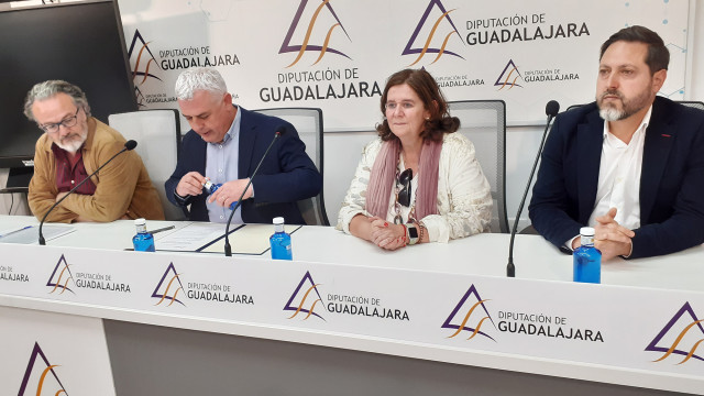 *PIE DE FOTO: Han anunciado el ganador del XI Premio de Periodismo Internacional "Cátedra Manu Leguineche", de izquierda a derecha: Miguel Ángel Noceda, presidente de la FAPE; José Luis Vega, presidente de la Diputación de Guadalajara; Mª Teresa del Val, directora de la Fundación General de la Universidad de Alcalá; y Luis Viejo, alcalde de Brihuega.