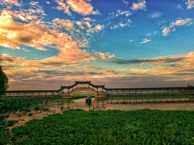 Pero entre las modernas fábricas y los altos rascacielos, Jiangsu esconde viejas ciudades monumentales y unos paisajes únicos en los que parece que se ha parado el tiempo y que transportan al viajero a una China auténtica, casi desconocida en la que la cultura y las tradiciones milenarias se sienten en sus calles. Contribuye a ese paisaje idílico la presencia constante del agua en todas sus formas. Además del impresionante Yangtsé que arroja su enorme caudal al Mar de la China Oriental (parte del Pacífico) muy cerca de Nanjing, capital de la región y también capital de China durante varios períodos históricos, la provincia está surcada por el Gran Canal Beijing-Hangzhou, que cruza de parte a parte el país, y es el canal artificial más grande del mundo con casi 1.800 kilómetros de recorrido. Los ríos Yangtsé, Huaihe, los lagos Taihu y Honghu (dos de los cincos mayores de agua dulce del país), junto con el Gran Canal constituyen atractivo especial en el que solo por contemplar la majestuosidad de sus paisajes, ya merece la pena visitar Jiangsu. Todo un entramado de ríos entrecruzados y redes acuáticas que hacen que el agua sea la corriente de vida de esta región que ha sabido desde los tiempos antiguos aprovechar su riqueza y convertirla en su fuente de vida.