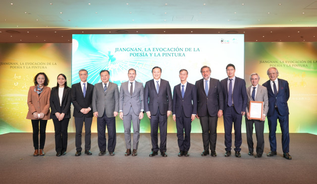 Puede resultar sorprendente combinar imágenes de ciudades españolas como Madrid, Sevilla y Toledo con los espectaculares Monte Jianglag, Lago del Oeste o Templo de Lingyin en China. Y quizá más ver bailar a una joven pareja española el pasodoble “España cañí” al ritmo del guqin, una especie de cítara horizontal, el tambor dagu, la flauta xiao o con cuencos de cerámica celadón, instrumentos tradicionales chinos. También embellecieron el acto cinco espectaculares modelos españolas con un desfile de moda inspirado en Heaven Gaia, que representa la estética vaporosa de la moda oriental, y una pequeña muestra de danza con cintas de colores de ópera Wu. Pero la idea de esa fusión de culturas y atractivos turísticos entre España y la provincia de Zhejiang era el objetivo principal de la presentación que llevaba el bello título de "Jiangnan, la evocación de la Poesía y la Pintura" que ha tenido lugar en Madrid hace unos días.