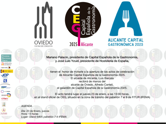El traspaso definitivo de Oviedo de la Capital Española de la Gastronomía se va a producir el próximo 23 de enero, jueves, a las 13:00 horas, en la Feria Internacional de Turismo de Madrid (FITTUR) el stand situado en la zona de tránsito del pabellón 7 al pabellón 9.